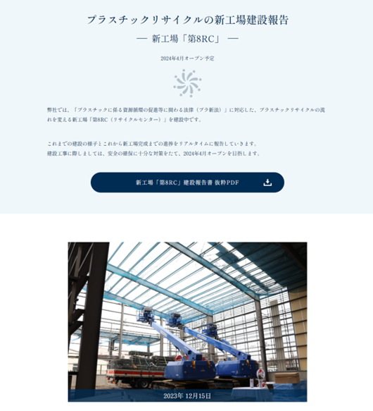 弊社では、「プラスチックに係る資源循環の促進等に関わる法律(プラ新法)」に対応した、プラスチックリサイクルの流れを変える中間処理の新工場「第8RC(リサイクルセンター)」を建設中です。