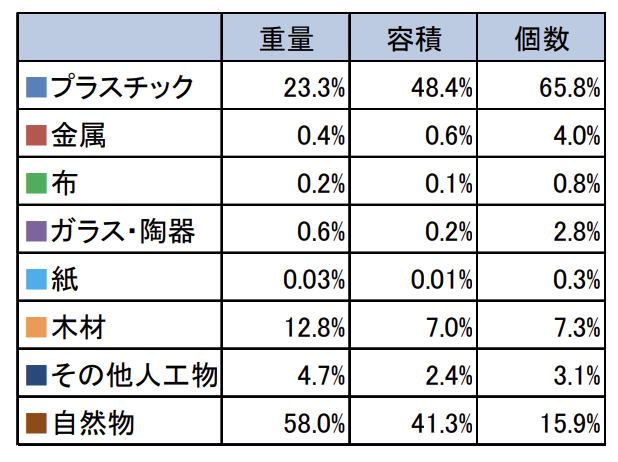 日本での漂着ごみ調査結果