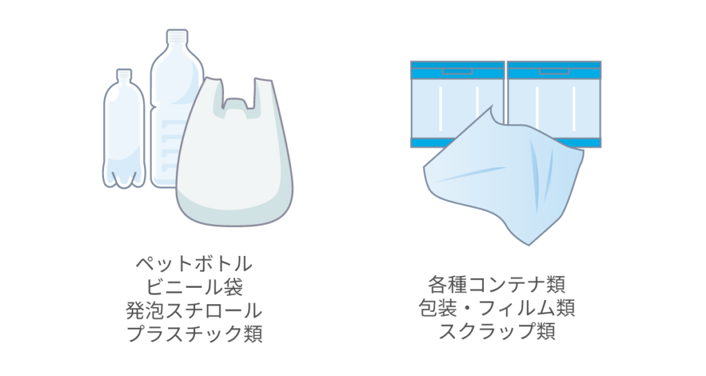 - プラスチック製品の製造・加工、流通過程から出るスクラップや包装資材など