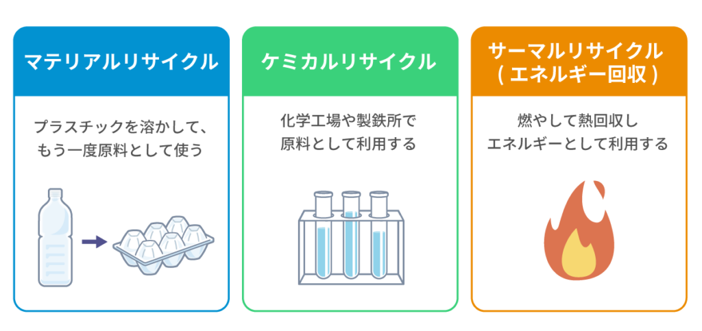 そのリサイクルの方法は、おもに3通りあります。