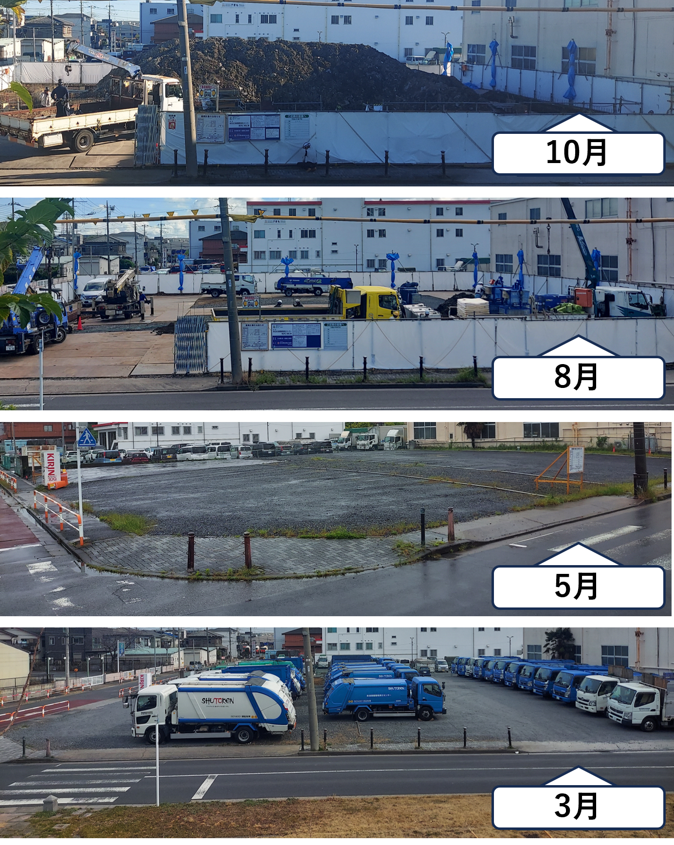 工場建設予定地(東京都足立区入谷8丁目)は、2023年春には駐車場として活用されてましたが、夏以降、囲いが設置され、掘削をするなど、基礎工事が進んでいきました。