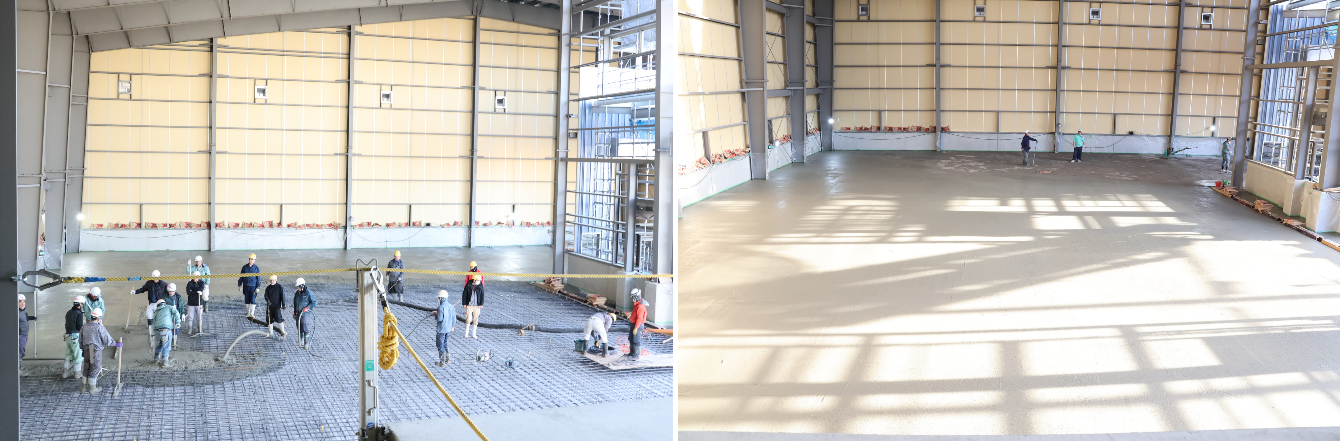 2024年を迎え、建設が続いております。コンクリートが床一面に敷かれました。