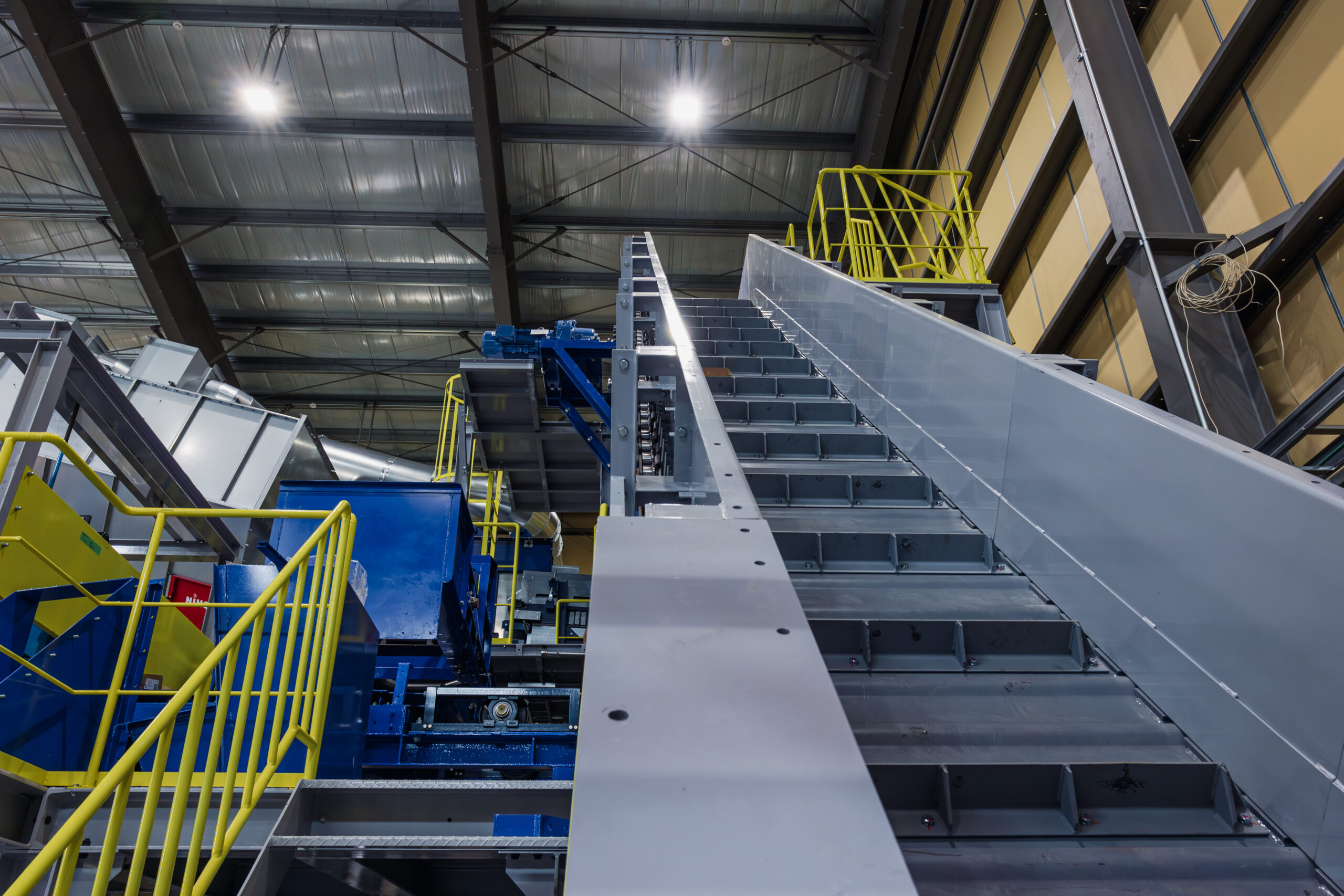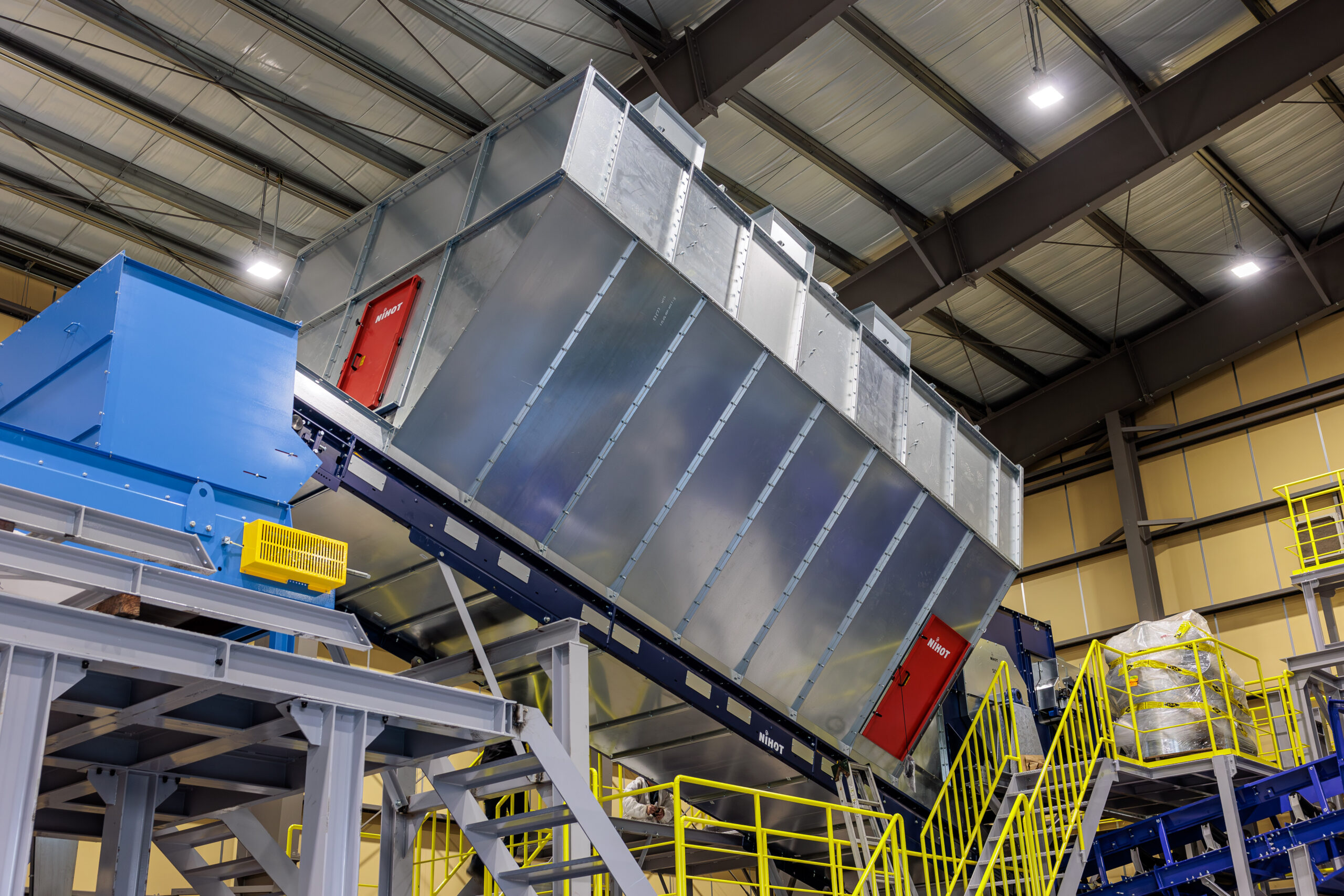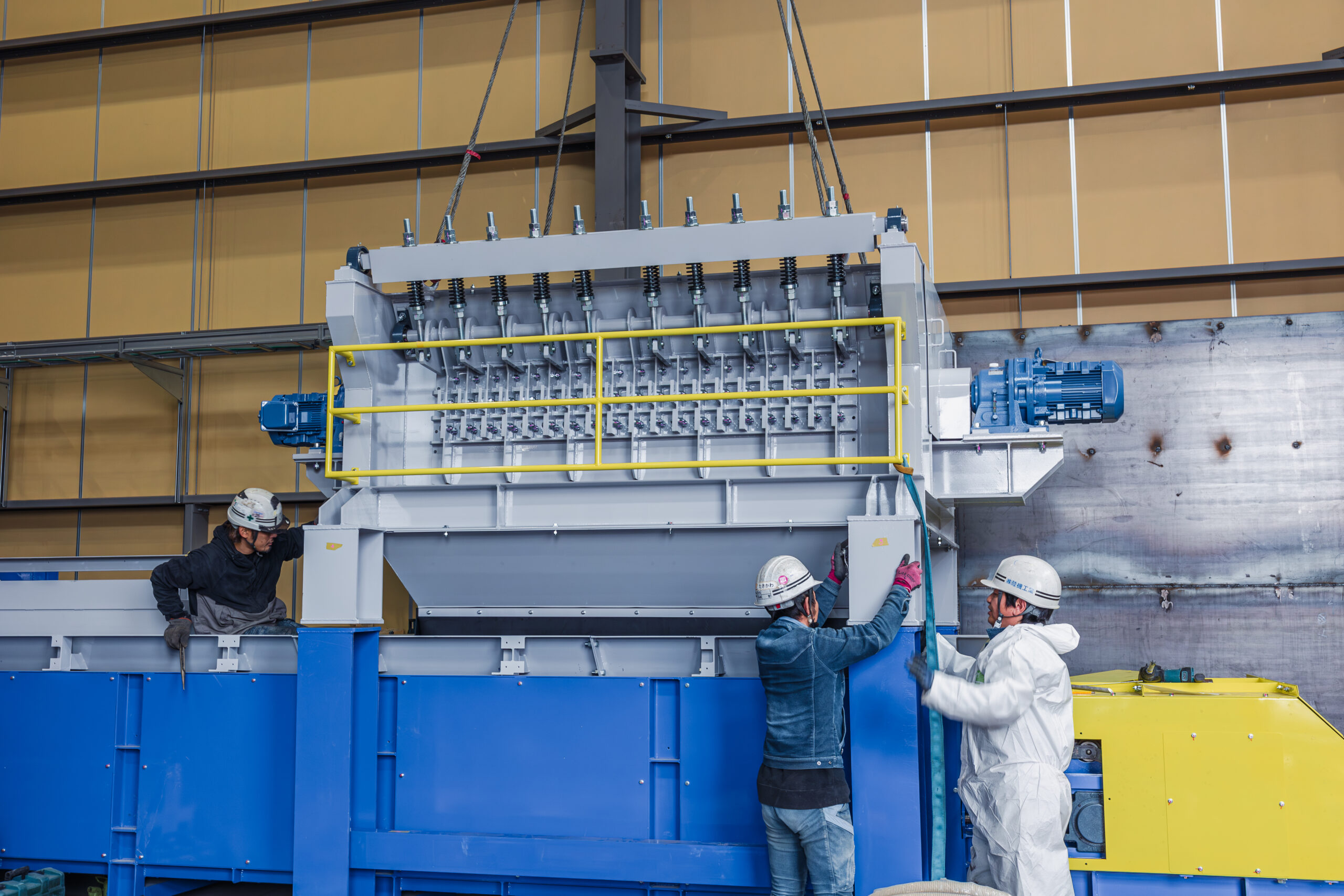 破袋機は、ゴミ袋を破る工程で使われる、とても大きな機械です。